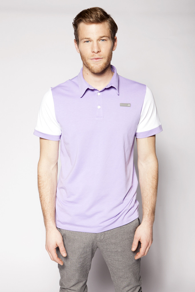 Two of the more eye-catching polos in the collection are the Sullivan and the Charlton. Both are contemporary in style with the Sullivan sporting royal blue color blocking on the chest and sleeves, while the Charlton features contrasting white sleeves against a light purple body.