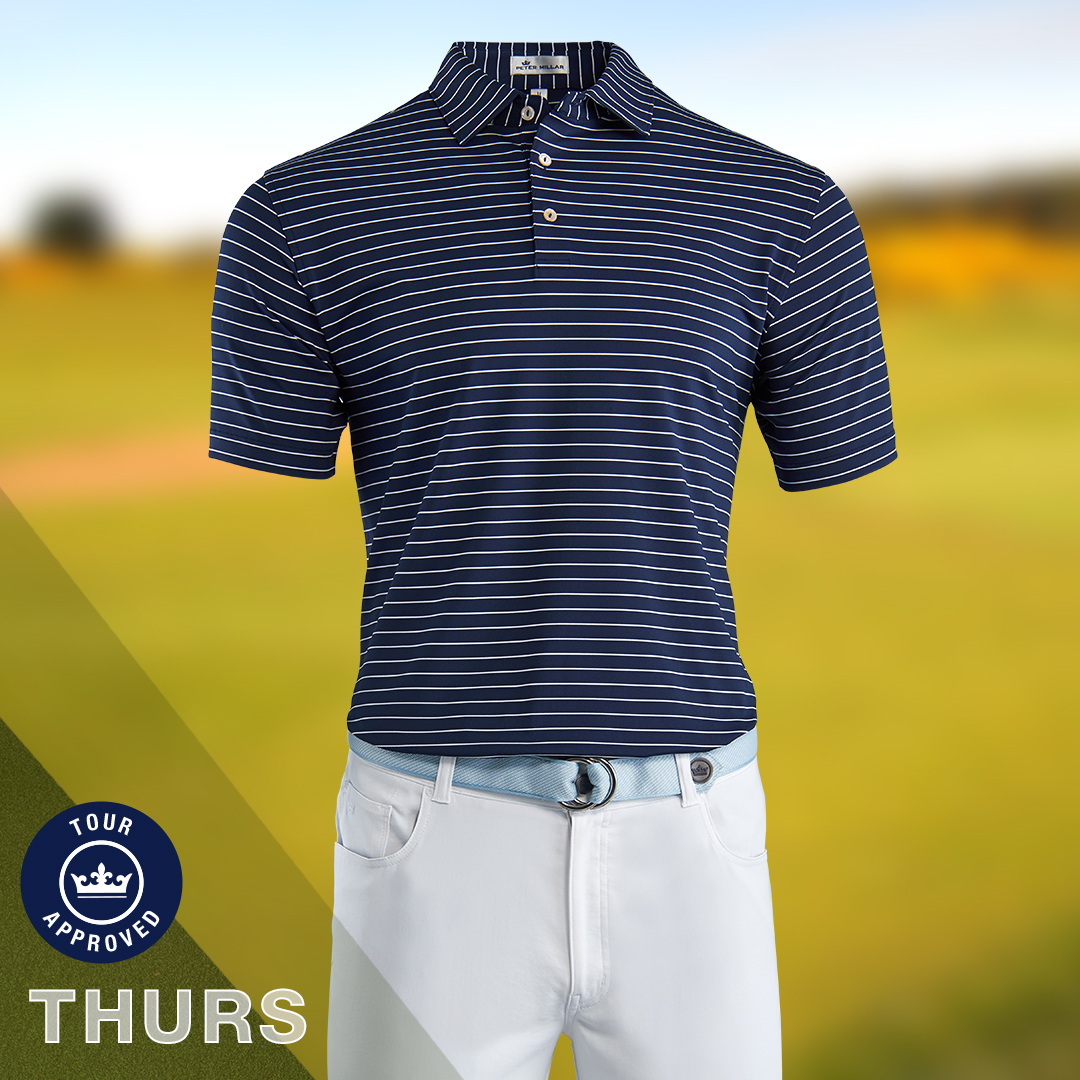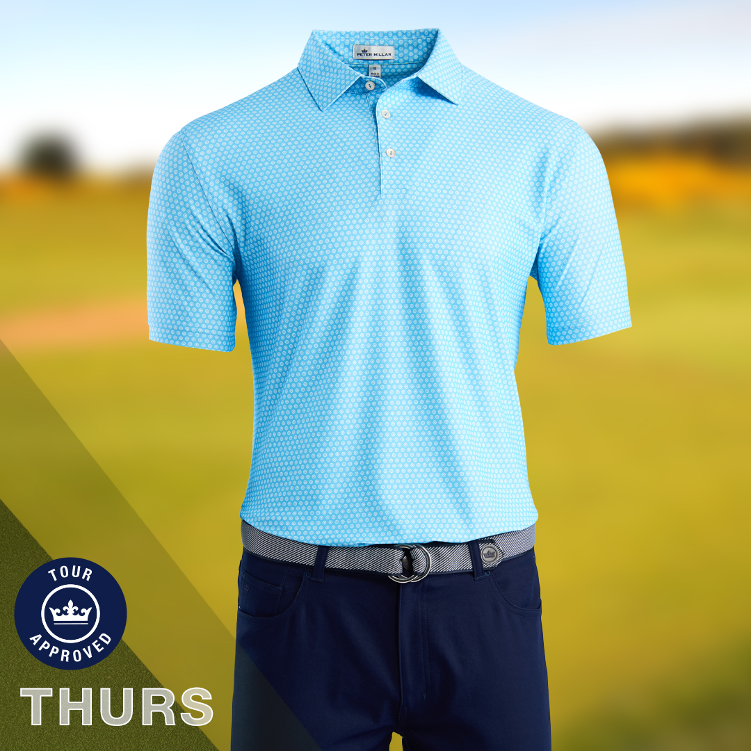 Fresh colors, new designs, and the latest technology. This is Spieth’s best major championship script in a while. Splashes of neon coral bring energy. Threadborne polos and pants for three of the days.