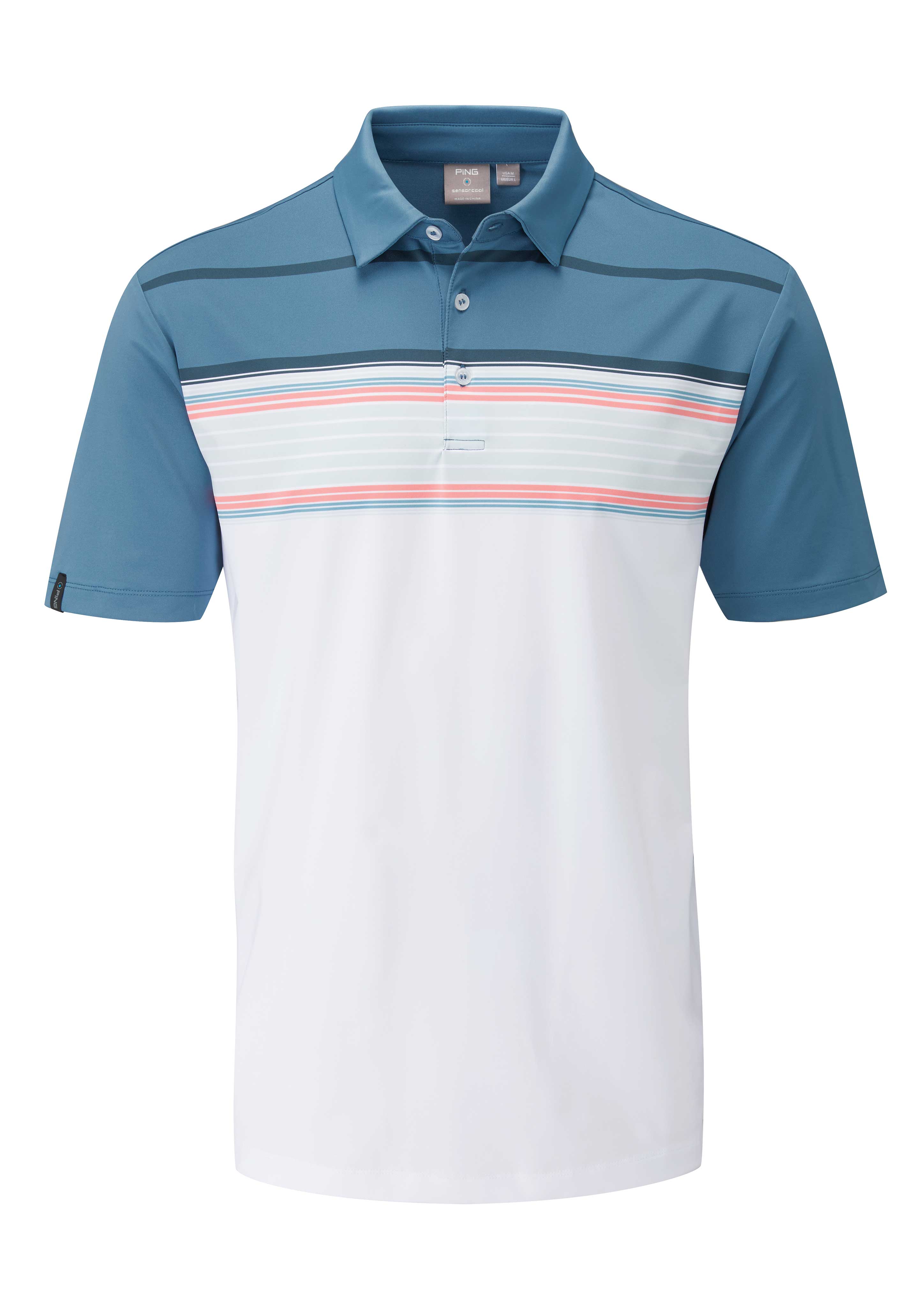 A muted version of his signature orange with a jacquard diamond print. Tonal camo and geometric prints put Rickie on trend at Bellerive.